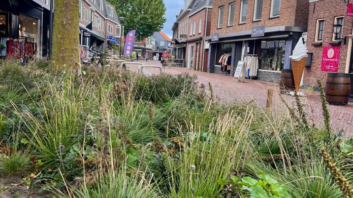 De bestrating op het Kerkplein wordt voor een groot deel hergebruikt op het Kerkplein en aangevuld met nieuwe bestrating. Bij de productie van nieuwe bestrating komt veel CO2 vrij. Door bestrating opnieuw te gebruiken wordt de CO2-uitstoot beperkt. Verder worden de huidige prullenbakken in het centrum refurbished. Dit betekent dat ze worden opgeknapt en straks als nieuw zijn. In de tussentijd worden er tijdelijke prullenbakken geplaatst.